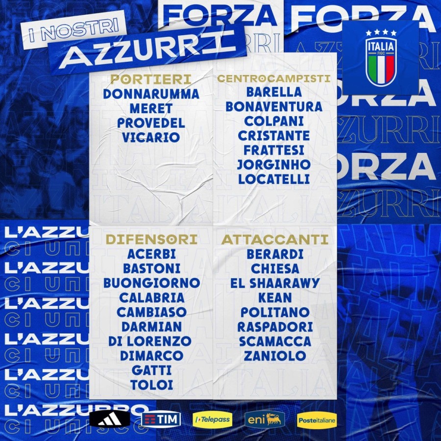 იტალიის ნაკრების შემადგენლობა ევრო 2024-ის შესარჩევი ეტაპის დასკვნითი მატჩებისთვის ასეთია: