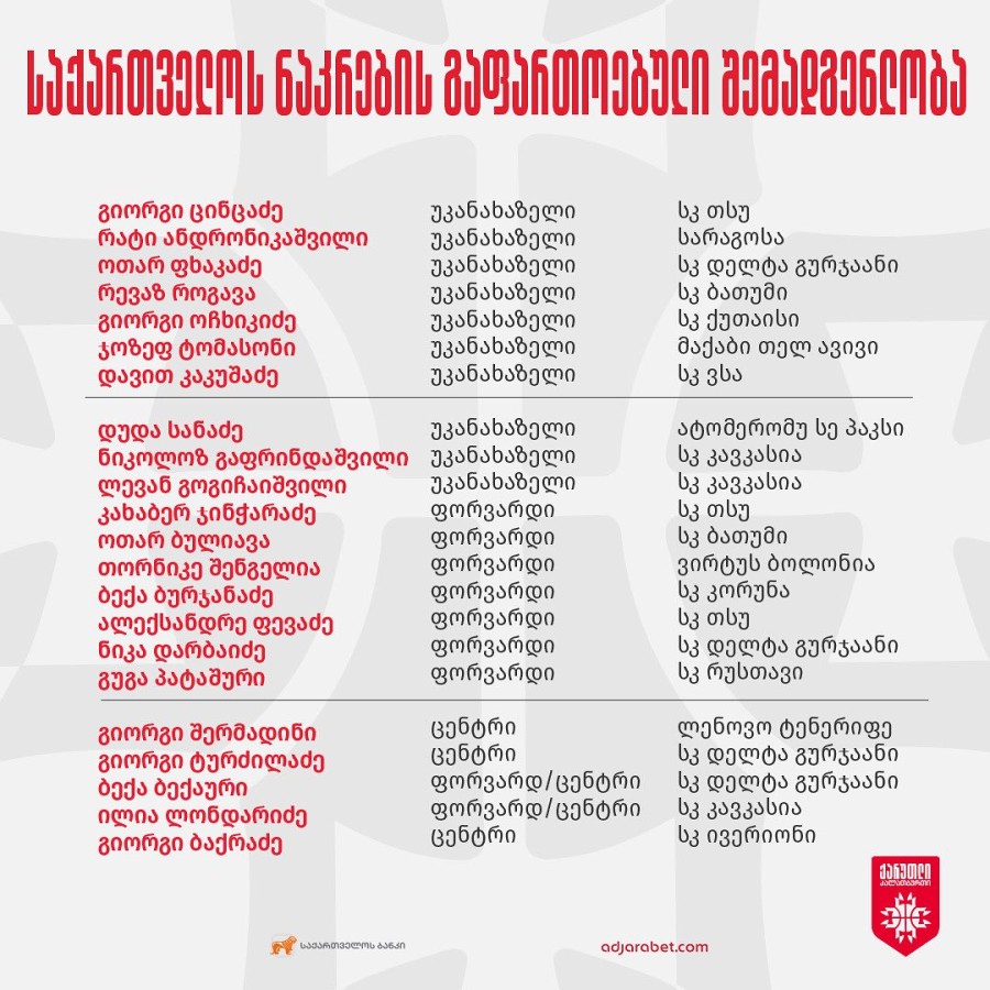 ფიბა ევრობასკეტ 2025-ის პირველი საკვალიფიკაციო ფანჯრისთვის საქართველოს ეროვნული ნაკრების გაფართოებული შემადგენლობა დასახელდა.