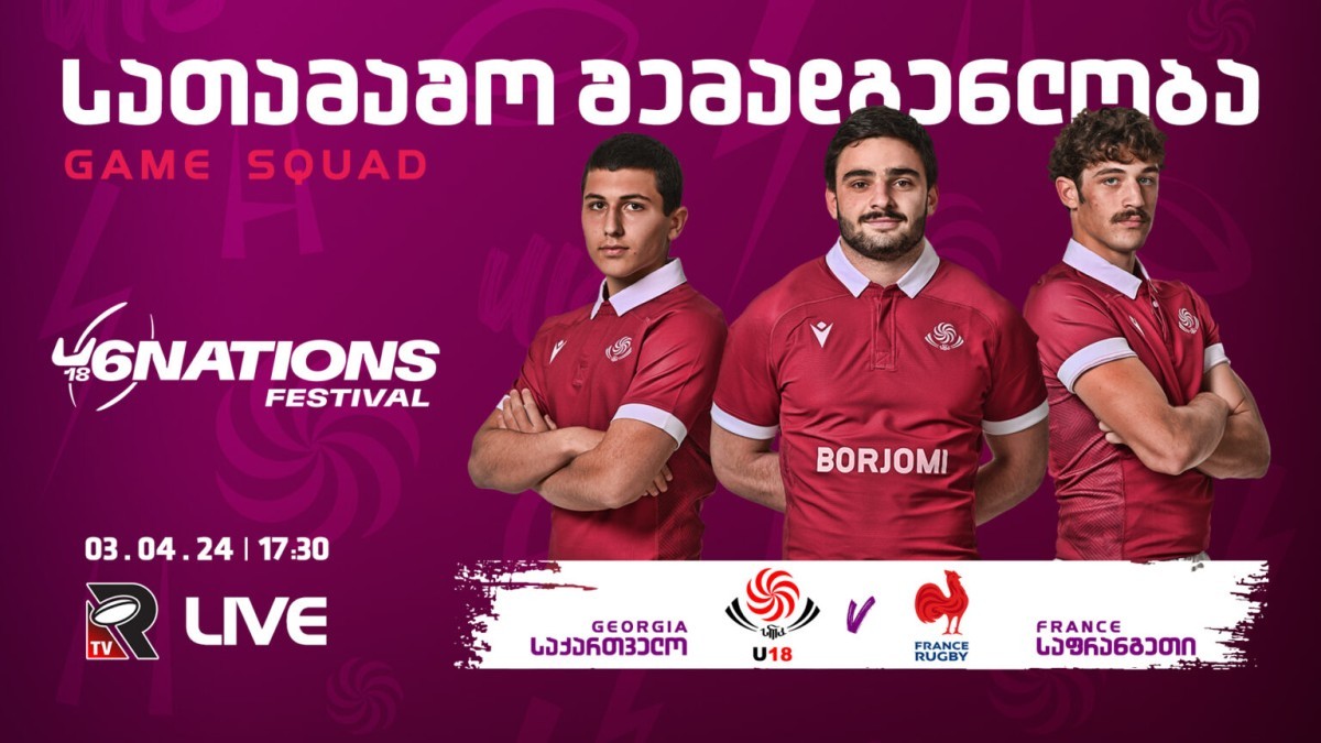 უმცროსი ბორჯღალოსნების სამწვრთნელო შტაბმა, 18-წლამდელთა ექვსი ერის ფესტივალის მეორე მატჩისთვის შემადგენლობა დაასახელა.