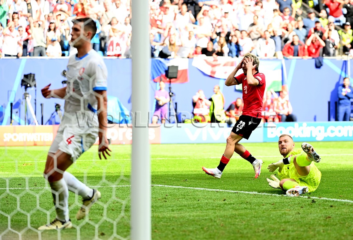 23-ე წუთზე ადამ ჰლოჟეკმა გოლიც გაიტანა, როცა მამარდაშვილის მორიგ ბრწყინვალე სეივს დაამატა, მაგრამ ბურთი მან კარში ხელით გადაგზავნა, შესაბამისად, VAR-ზე მომენტი გადამოწმდა გოლი გაუქმდა. ეს უკვე მეორე გოლია, რომელიც VAR-ს შედეგად გაუქმდა ამ ევროზე საქართველოს ნაკრების კარში.