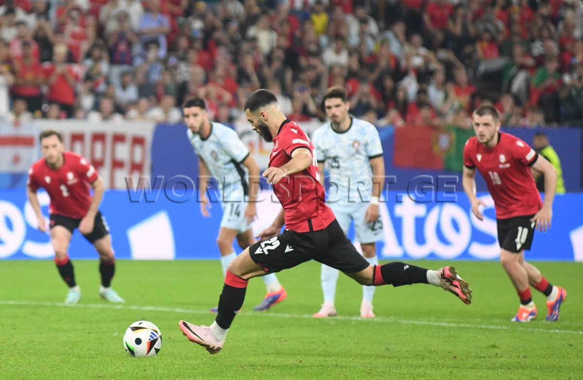 მატჩის 55-ე წუთზე ქართველ გულშემატკივარს კიდევ ერთხელ გაუჩერდა გული. ლუკა ლოჩოშვილი მეტოქის საჯარიმოში წააქციეს, თუმცა მსაჯმა პენალტი არ დადო. პორტუგალიამ შეტევა გააგრძელა და მამარდაშვილის მოგერიების შემდეგ, ვიდეო რეფერიმ შეხვედრის მთავარი მსაჯი, სანდრო შერერი ლოჩოშვილის მომენტის გადასამოწმებლად გაუშვა. ამ უკანასკნელმა გამეორების შემდეგ პორტუგალიელთა კარში პენალტისკენ მიუთითა, რომელიც მიქაუტაძემ ზუსტად შეასრულა და ბომბარდირთა დავაში ერთპიროვნულად გალიდერდა - 2:0.