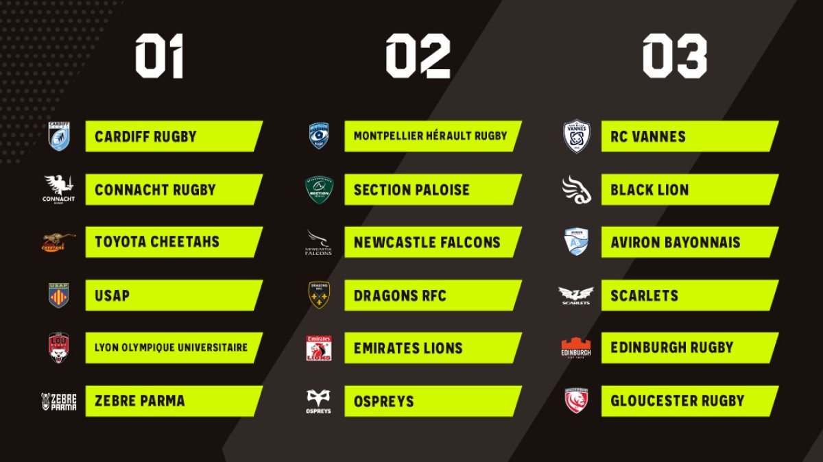 მეორე ჯგუფი: მონპელიე (საფრანგეთი), პო (საფრანგეთი), ნიუკასლი (ინგლისი), დრაგონსი (უელსი), ლაიონსი (სამხრეთ აფრიკა), ოსფრეიზი (უელსი);