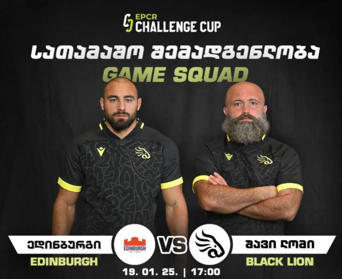 ‘შავი ლომის’ სამწვრთნელო შტაბმა შოტლანდიაში ‘ედინბურგთან’ გასამართი მატჩისთვის სასტარტო შემადგენლობაში ოთხი ცვლილება განახორციელა - ორი ხაზში და ორიც შერკინებაში.