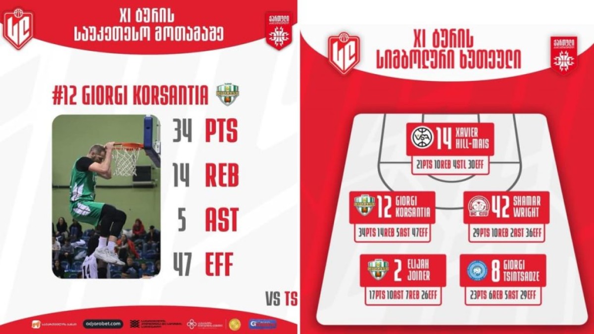 შეგახსენებთ, რომ საუკეთესო (სიმბოლური) ხუთეულში მოსახვედრად მნიშვნელობა არა აქვს გუნდმა წააგო თუ მოიგო – რომელ მოთამაშესაც სარგებლიანობის საუკეთესო ინდექსი ექნება, პოზიციების მიხედვით ისინი მოხვდებიან საუკეთესოთა ხუთეულში. რაც შეეხება MVP-ის, იგი ვერ გახდება წაგებული გუნდიდან. თუმცა მე-11 ტურის MVP-ის ყველანაირად გაუსაჩივრებელია: ქუთაისის მძიმე ფორვარდმა, გიორგი კორსანტიამ უშუალო კონკურენტ თსუ-სთან მატჩში 34 ქულა, 14 მოხსნა და 5 პასი მოაგროვა, მისმა გუნდმა კი სუპერლიგის ერთპიროვნული ლიდერი დაამარცხა.