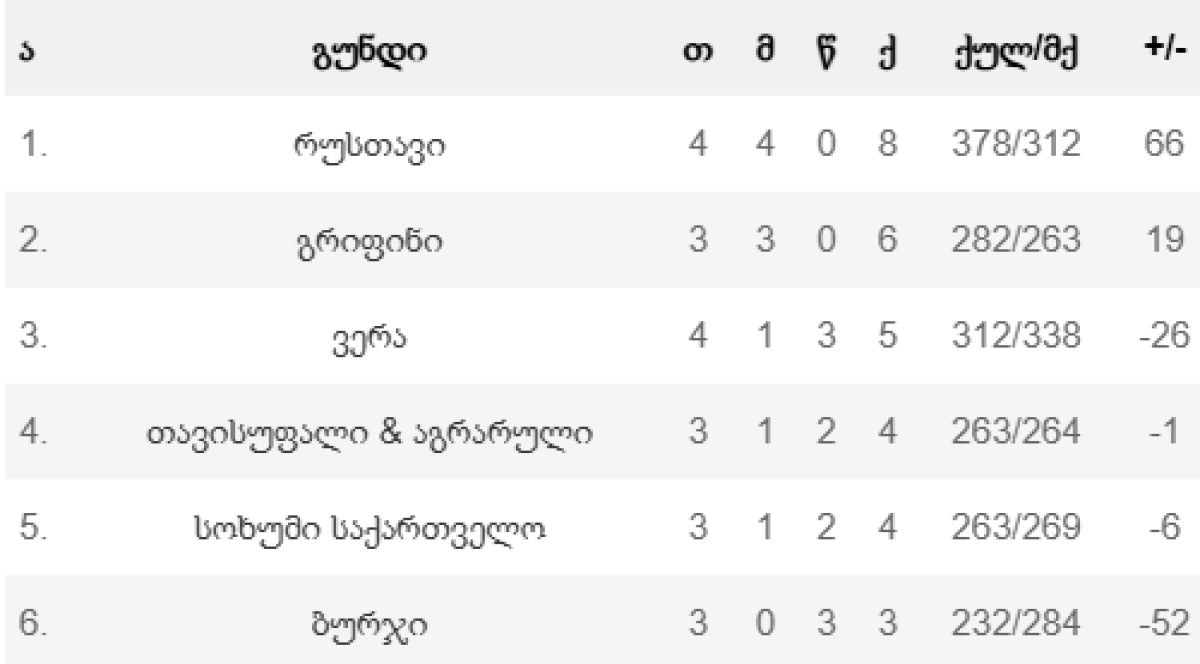 საკალათბურთო “ა” ლიგის მე-4 ტური დღეს რუსთავში დაიწყო. გათამაშების ლიდერმა “რუსთავმა” “ვერას” უმასპინძლა და 90:77 (სტატისტიკა) დაამარცხა. რუსთაველებმა მეოთხე გამარჯვება მოიპოვეს და მინიმუმ ხვალ, საღამომდე ერთპიროვნული ლიდერები იქნებიან. გოგა ცეკვავას გაწვრთნილი გუნდი “ა” ლიგას დაუმარცხებლად ლიდერობს, თუმცა წაგების გემო არ იცის არც კასპის “გრიფინმა”, რომელიც ხვალ “სოხუმი-საქართველოს” დაუპირისპირდება და გამარჯვების შემთხვევაში რუსთავს ცხრილის თავში კვლავ გაუთანაბრდება.