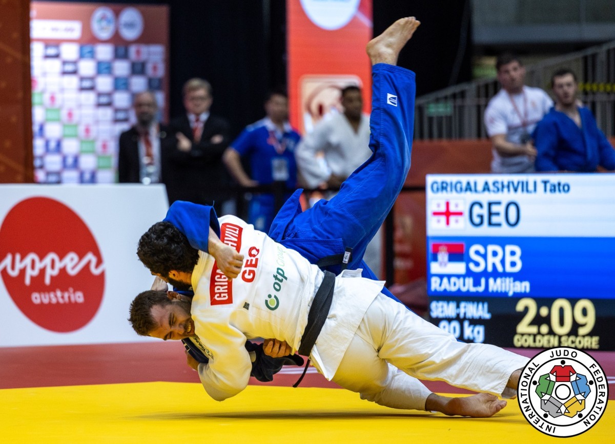ტატო გრიგალაშვილი დროებით 90 კგ-ში გამოდის, სადაც ცოტა ხნის წინ ევროპის ღია პირველობა მოიგო, ხოლო ახლა ფინალში გავიდა. ტატომ ფრანგ ტეო ერბიეს, იაპონელ ჰიდეტოში ტოკუმოჩის, ავსტრიელ თომას შარფერტერს და სერბ მილიან რადულის აჯობა, რის შემდგომაც ფინალში გიორგი ჯაბნიაშვილს უნდა შეხვდროდა, მაგრამ ბრძოლას ჩაეხსნა და ვერცხლის მედალს დასჯერდა.