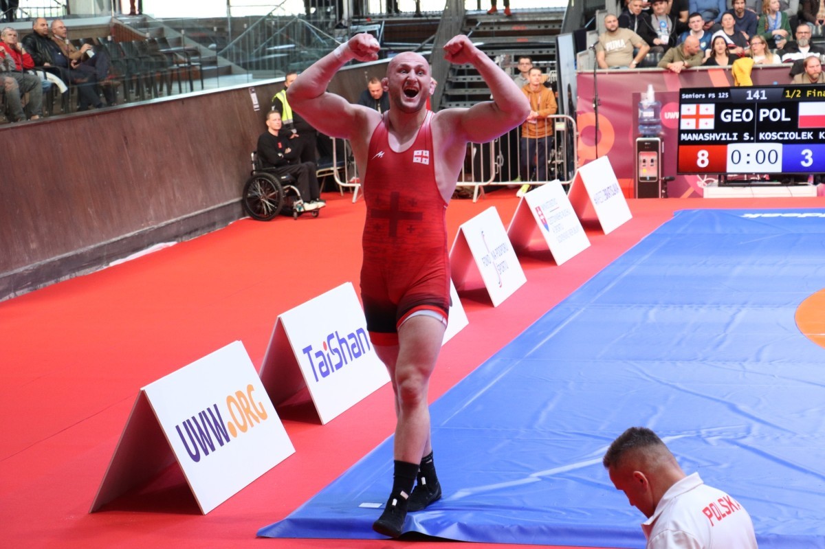 125 კგ წონით კატეგორიაში მანაშვილმა ნახევარფინალში პოლონელი კამილ კოშციოლეკს 8:3 აჯობა და ფინალში გავიდა, სადაც აზერბაიჯანის სახელით მოასპარეზე გიორგი მეშველდიშვილს გაეჯიბრება.