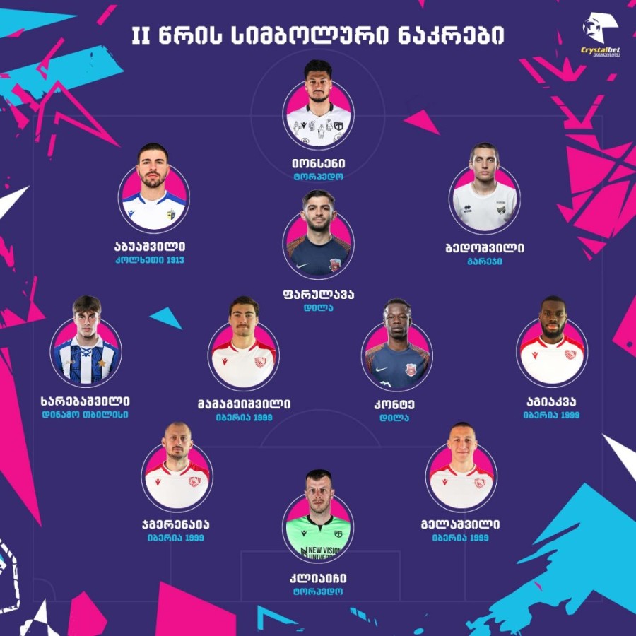 ნახევარმცველები: ბედოშვილი (გარეჯი), ფარულავა (დილა), კონტე (დილა), მამაგეიშვილი (იბერია), აბუაშვილი (კოლხეთი)