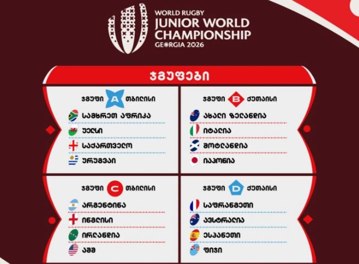 საქართველოს 20-წლამდელთა ნაკრები ახალგაზრდულ მსოფლიო ჩემპიონატზე ა ჯგუფში, მოქმედ ჩემპიონ სამხრეთ აფრიკასთან, უელსთან და ურუგვაისთან ითამაშებს. განთესვის შედეგად ბ ჯგუფში ახალი ზელანდია, იტალია, შოტლანდია და იაპონია მოხვდნენ; გ ჯგუფში არგენტინა, ინგლისი, ირლანდია და აშშ ითამაშებენ; დ ჯგუფში - საფრანგეთი, ავსტრალია, ესპანეთი და ფიჯი.