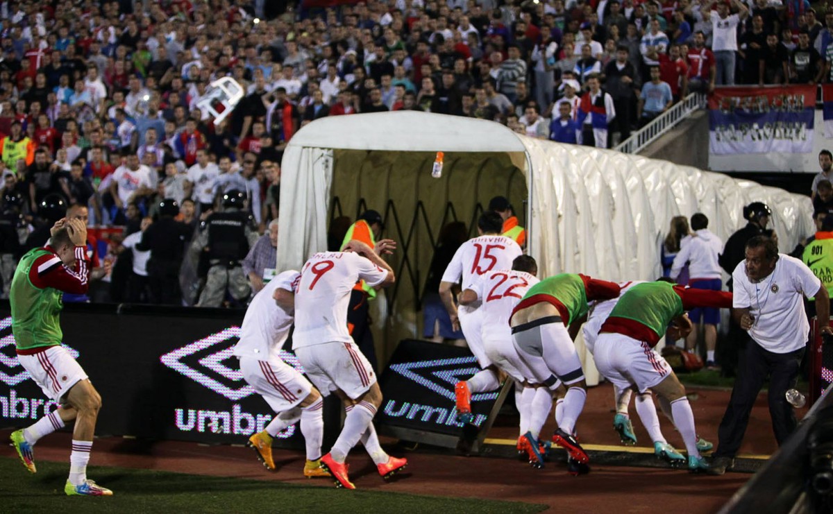სერბეთისა და ალბანეთის ეროვნულ ნაკრებთა ევრო 2016-ის შესარჩევი მატჩის ჩაშლის შემდეგ, სერბეთის ფეხბურთის ფედერაციის გენერალურმა მდივანმა სტეფან ლაკოვიჩმა აღნიშნა, რომ უეფა და სერბეთის მხარე შეხვედრის გაგრძელების მომხრეები იყვნენ, თუმცა ალბანელებმა თამაშის გაგრძელებაზე უარი განაცხადა.