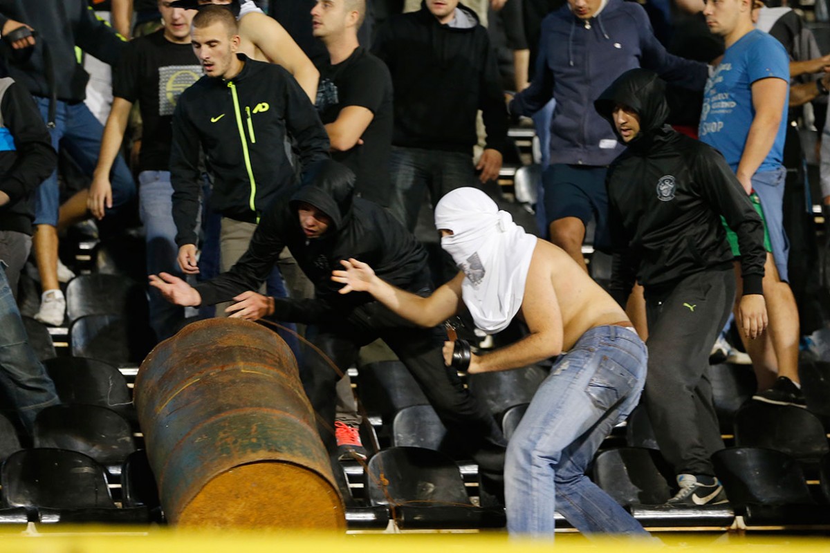 I ჯგუფის შეხვედრა 14 ოქტომბერს ბელგრადში “პარტიზანის” სტადიონზე შედგა. თუმცა, დროზე ადრე შეწყდა, რადგან პირველი ტაიმის მიწურულს მოედნის თავზე უპილოტო საფრენი აპარატი გამოჩნდა, რომელიც დისტანციურად იმართებოდა და მასზე ალბანელი ნაციონალისტების დროშა იყო მიმაგრებული, ე.წ. “დიდი ალბანეთის” რუქით.