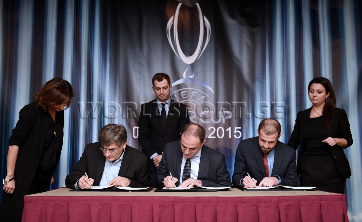 დღეს სასტუმრო “ქორთიარდ მერიოტში” ევროპის 2015 წლის სუპერთასთან დაკავშირებით საქართველოს ფეხბურთის ფედერაციას, თბილისის მერიასა და “დინამო არენას” შორის ხელშეკრულება გაფორმდა.