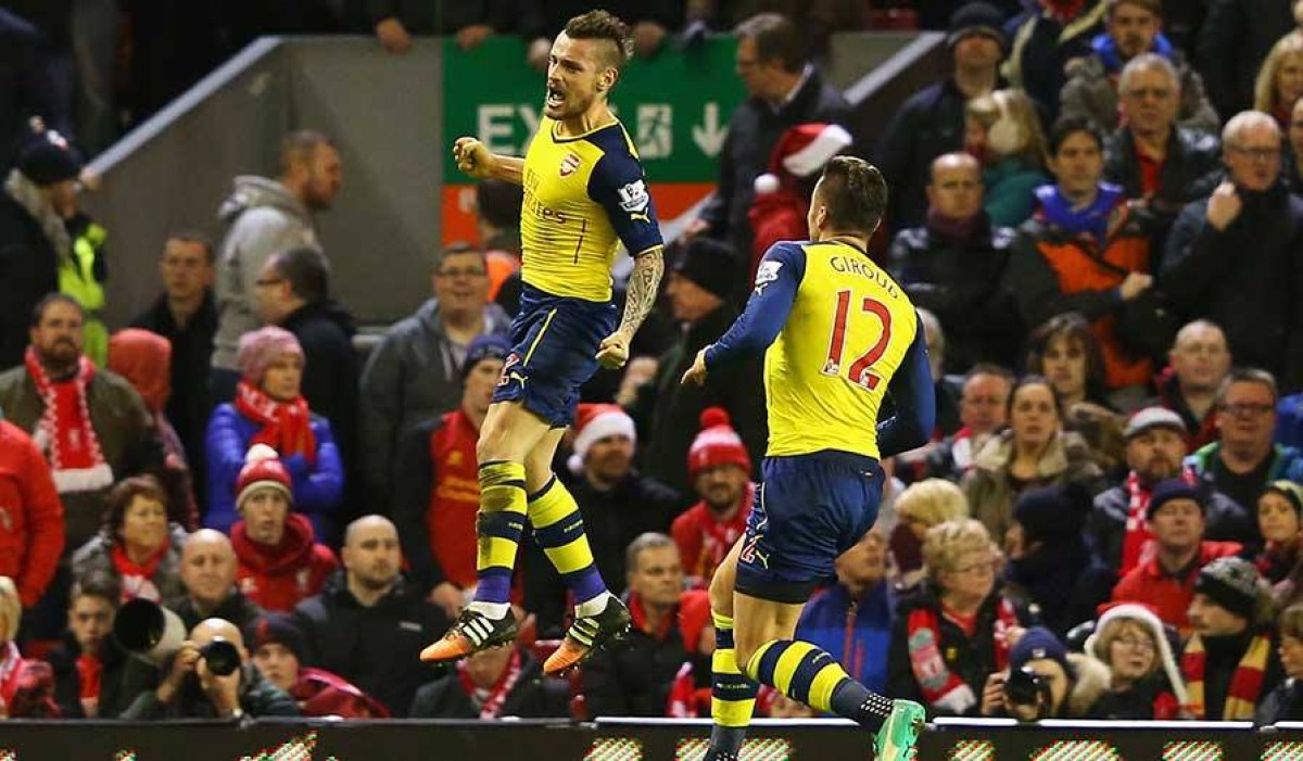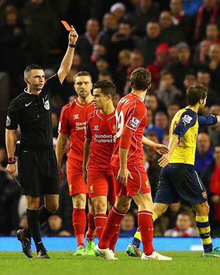 უდიდეს ინტერესს იწვევდა დღის მეორე შეხვედრაც, რომელშიც “ლივერპული” ლონდონის “არსენალს” მასპინძლობდა. სატურნირო ცხრილიდან გამომდინარე მასპინძლებს მოგება მართებდათ და მატჩი აქტიურად დაიწყეს. მე-12 წუთზე პირველი სახიფათო მომენტი ადამ ლალანამ შექმნა, რომელმაც კარს ზემოდან გადააცილა. 35-ე წუთზე თამაშში ჩართვა უკვე შესნის მოუწია, პოლონელმა კიპერმა ლაზარ მარკოვიჩს არ გაატანინა ახლო მანძილიდან. მასპინძლებმა პირველ ტაიმში გოლის გატანა მაინც მოახერხეს, 45-ე წუთზე ფელიპე კოუტინიომ ერთი მოძრაობით ჩამოიშორა მატიე დებუში და შორეულ კუთხეში გაუტანა შესნის. “წითლებმა” ძალიან საჭირო დროს გაიტანეს, საფეხბურთო ენაზე რომ ვთქვათ, გოლი “გასახდელში გაატანეს” მეტოქეს, მაგრამ ყველასთვის მოულოდნელად მსგავს სიტუაციაში თავად აღმოჩნდნენ მერსესაიდელები – “მეთოფეებმა” ჯარიმის მოპოვება მოასწრეს და მე-2 დამატებულ წუთზე თავური დარტყმით წინა ეპიზოდის ანტი-გმირმა დებუშიმ წონასწორობა აღადგინა.