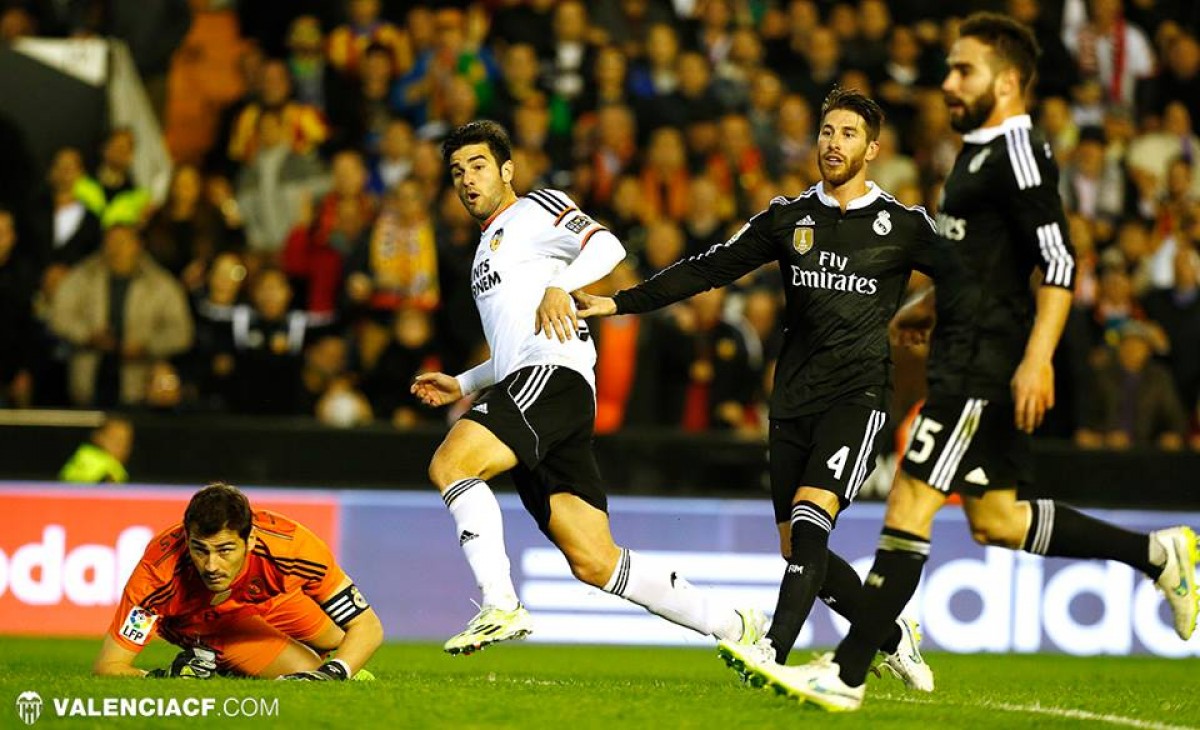 მადრიდელები აღნიშნულ შეხვედრას ყველა ტურნირზე 22 მატჩიანი მოგებათა სერიით შეხვდნენ და ყველა დროის რეკორდის დამხობასთან ძალიან ახლოს იყვნენ, თუმცა ამის გაკეთების საშუალება “ღამურებმა” არ მისცეს. შეხვედრის დასაწყისი თანაბარი იყო და არცერთ გუნდს სახიფათო მომენტი არ ჰქონია. სტუმართა სასარგებლოდ მოვლენები უცბად განვითარდა, როდესაც ხესუს ხილ მანსანომ ალვარო ნეგრედოზე ხელით თამაში დააფიქსირა და პენალტის ნიშნულისკენ მიუთითა. 11-მეტრიანი კრიშტიანო რონალდუმ გოლად აქცია და მე-14 წუთზე ანგარიში გახსნა. მალევე პორტუგალიელს მეორეს გატანა მართებდა, მაგრამ ცარიელ კარში ააცილა. “ღამურებს” გაშვებული გოლის შემდგომ, პაბლო პიატის ტრავმაც დაემატა, რომელიც შესაცვლელი გახდა და მის ნაცვლად ხოსე ლუის გაია გამოვიდა, რომელიც ძალიან აქტიურად ჩაერთო შეხვედრაში. “ვალენსიას” “რეალთან” შინ ზედიზედ 5 შეხვედრა ჰქონდა წაგებული ლა ლიგაში და გაშვებული ბურთის შემდეგ ძალიან დიდ ფსიქოლოგიურ წნეხს განიცდიდა, თუმცა ნელ-ნელა თამაშის დალაგება მოახერხეს, რასაც ტაიმის დამატებულ წუთზე კინაღამ ანგარიშის გათანაბრება მოჰყვა. ანდრე გომეშის დარტყმული კარვახალს მოხვდა და კასილასი ვერაფერს იზამდა რომ არა ძელი...