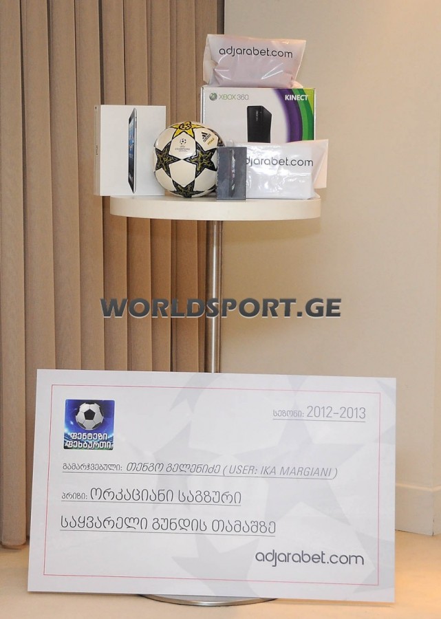 “Fantasy-ის პირველი პრეცედენტი ევროპის 2012 წლის ჩემპიონატზე გვქონდა, რამაც გულშემატკივართა დიდი ინტერესი გამოიწვია. გადავწყვიტეთ, უეფას ჩემპიონთა ლიგაზეც ჩაგვეტარებინა ასეთი შეჯიბრება. გათამაშება სექტემბრიდან მაისის ჩათვლით, 13 ეტაპად მიმდინარეობდა. პირველ ხუთეულს სოლიდური პრიზები ხვდა წილად. მე-6, მე-7, მე-8, მე-9 და მე-10 ადგილებზე გასულ მოთამაშეებს 100-100 ლარი გადაეცემათ. დაჯილდოვდნენ ჯგუფი ეტაპისა და პლეი ოფის გამარჯვებულებიც – მათ საჩუქრად თავიანთი საყვარელი კლუბის მაისურები და ბურთები გადაეცათ”, - განუცხადა “მსოფლიო სპორტს” “აჭარაბეთის” წარმომადგენელმა გიორგი ხუციშვილმა.