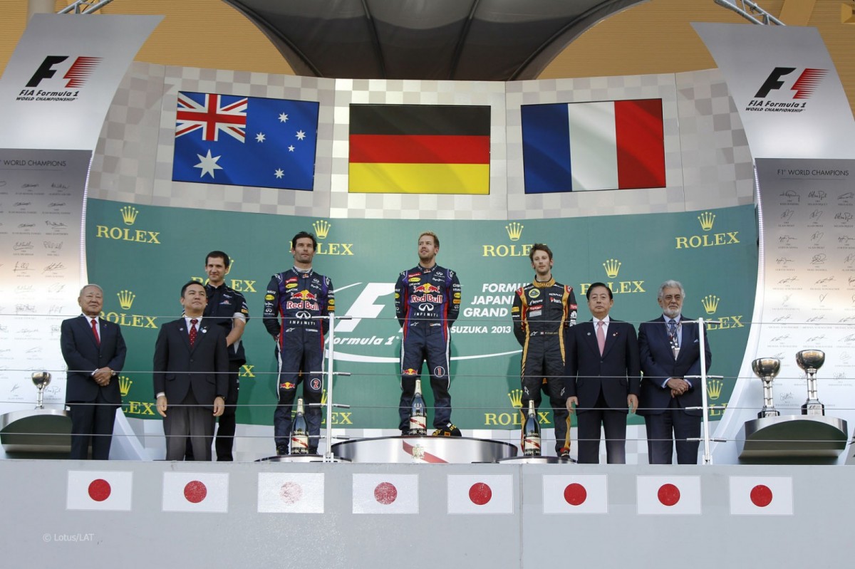 „იჩიბან, იჩიბან (პირველი, პირველი)“ - რადიოთი თავისიანებს იაპონურად შესძახა ფეტელმა, რომელსაც ამჯერად თანაგუნდელ მარკ ვებერის დასამარცხებლად, განსხვავებული სტრატეგია დასჭირდა. ისე კი, მარტო ვებერთან არ მოუწია ბრძოლამ სტარტიდანვე საწინაურებული რომენ გროჟანის დამარცხებაც საკმაოდ გაუჭრდა. ფეტელმა ქება არ დაიშურა თავისი ტექნიკური პერსონალისადმი, რომელსაც მსოფლიოში საუკეთესო უწოდა.