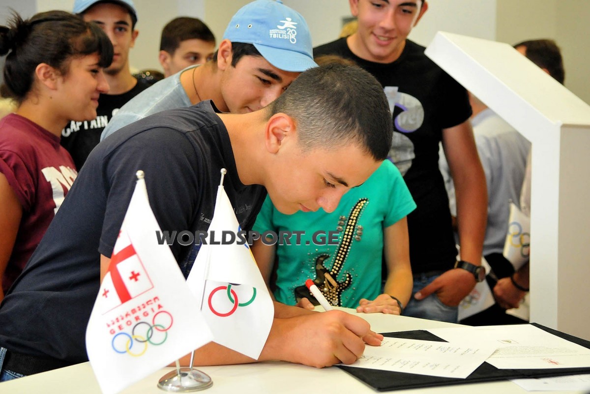 პრესკონფერენციის მიწურულს ქართული გუნდის სახელით ოლიმპიური ფიცი ჩოგბურთელმა მარიამ ბოლქვაძემ დადო. ბოლოს კი დელეგაციეს წევრები თბილისის 2015 წლის ახალგაზრდული ოლიმპიური ფესტივალის აღმასრულებელმა დირექტორმა გიორგი ხაჩიძემ შეჯიბრების ლოგოთი დამშვენებული კეპებით დაასაჩუქრა. ცნობისთვის, უტრეხტის ფესტივალს თბილისი 2015-ის 9-კაციანი დელეგაცია სადამკვირვებლო მისიით დაესწრება. ფესტივალის მიწურულს კი ისინი ჰოლანდიელთაგან ოლიმპიურ დროშას ჩაიბარებენ.