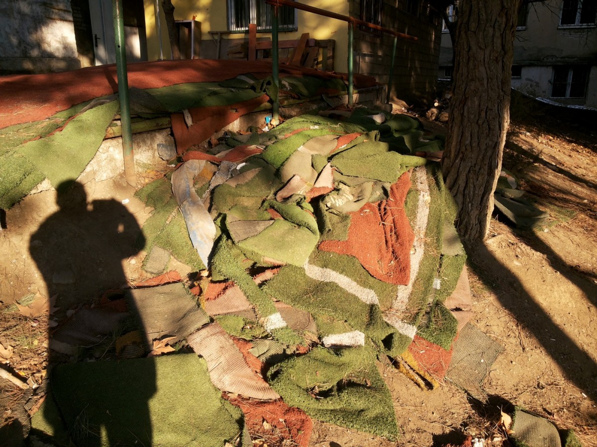 მართალი გითხრათ, ცრემლები მომადგა, მოვტრიალდი, რათა ატირებული არ დავენახე სხვა მასწავლებლებსა და ბავშვების მშობლებს. მოედანს გავერიდე და კინაღამ წავიქეცი - გროვად ეყარა ხელოვნურსაფარიანი ნამოედნარის ზოლები...