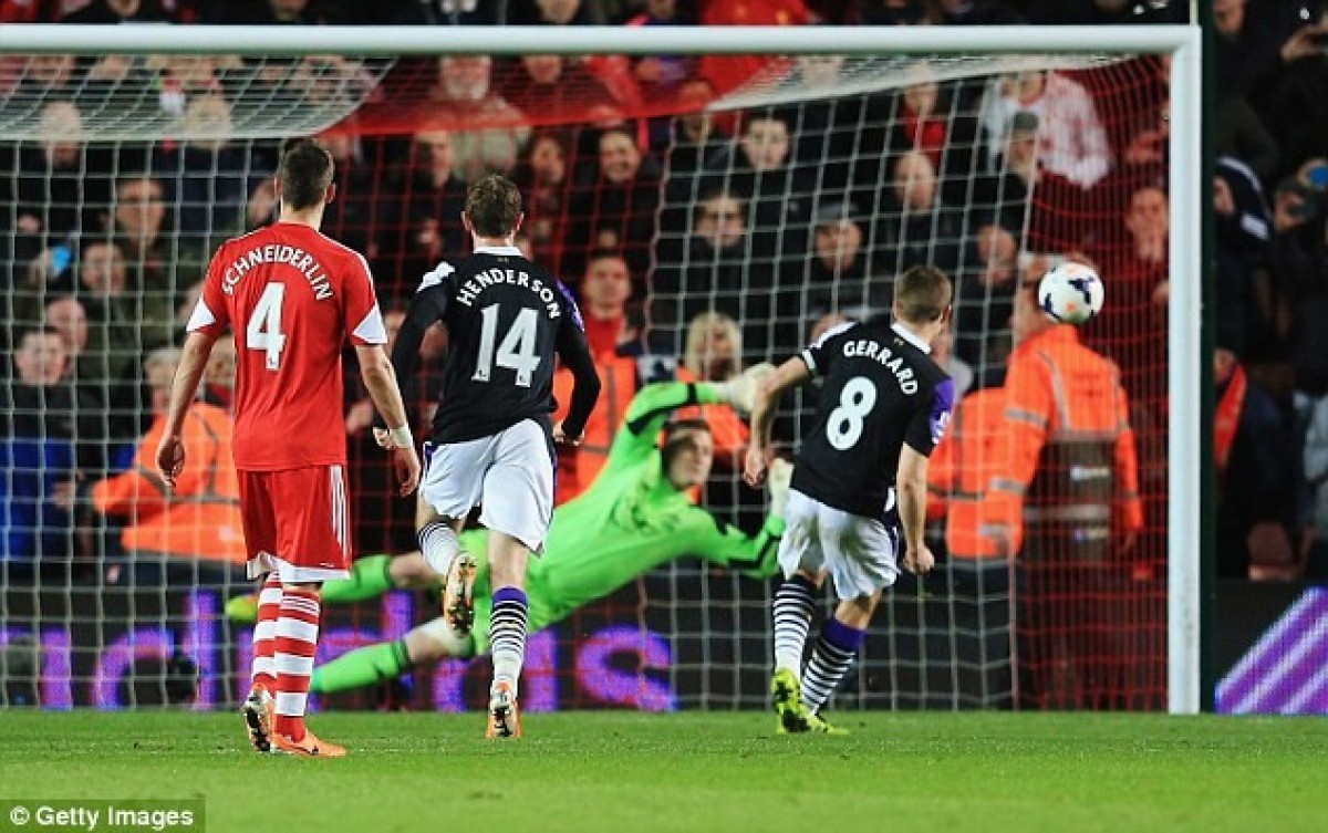 დღის გვიან შეხვედრაში კი “ლივერპულმა” “საუთჰემპტონი” დაანგრია. თუმცა მომენტები “წმინდანებსაც” ჰქონდათ, ადამ ლალანამ ძელსაც გაარტყა ბურთი. მაგრამ მანმადე ანგარიში რეაქტიულმა სუარესმა მე-16 წუთზე გახსნა. მეორე ტაიმში მერსისაიდელებმა ზეწოლა გააძლიერეს და სუარესის გადაცემით გოლი მინდორზე ერთი წუთის შესულმა სტერლინგმა გაიტანა. ბოლოსკენ, უკვე მსაჯის დამატებულ წუთებზე, მასპინძელმა ჟოზე ფონტემ სუარესი საჯარიმოში წააქცია და კაპიტანმა ჯერარდმა უნაკლოდ დაარტყა პენალტი.