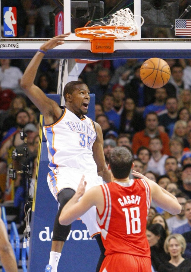ოკლაჰომელთა უპირატესობა მთელი მატჩის განმავლობაში აშკარა გახლდათ, რაც გუნდის ლიდერის კევინ დიურანტის დამსახურება იყო. ამ უკანასკნელმა “სანდერის” კიდევ ერთი ვარსკვლავის რასელ უესტბრუკის არყოფნაში, განსაკუთრებით მოინდომა და 38:13 წუთში 33 ქულა და 13 მოხსნა მიითვალა.