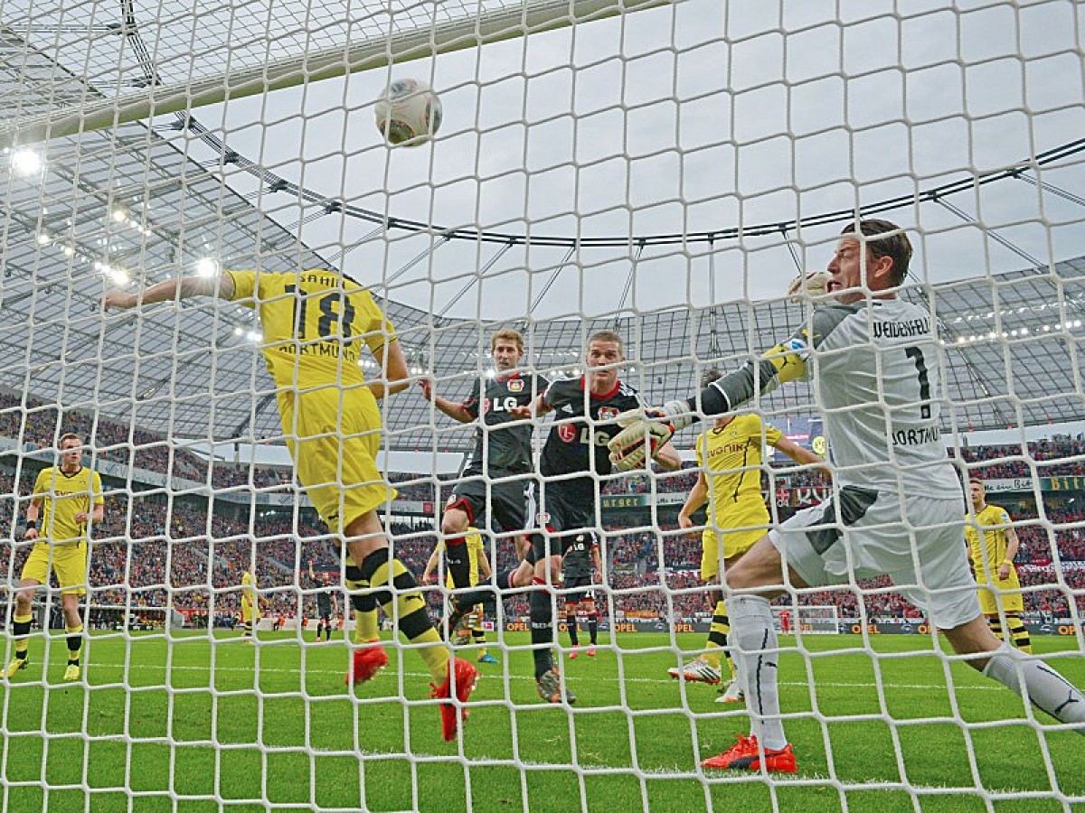 უხვგოლიანი მატჩი გამოვიდა “ბაი არენაზეც”, სადაც “ლევერკუზენმა” და “დორტმუნდმა” ქულები გაიყვეს. “ფარმაცევტები” მატჩის დებიუტშივე დაწინაურდნენ – კუთხურის შემდეგ, სტუმართა საჯარიმოში არეულობა შეიქმნა, რითაც ლარს ბენდერმა ისარგებლა. 29-ე წუთზე, ზუსტი თავურით უკვე ოლივერ კირხი გამოირჩა და წონასწორობა აღადგინა.