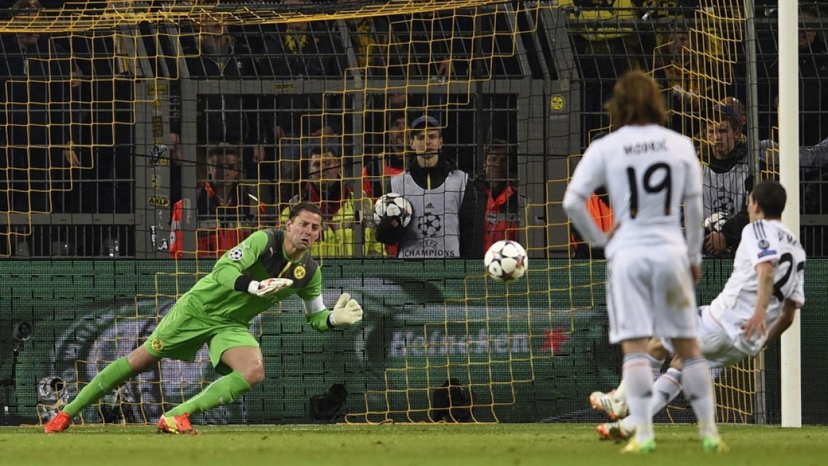 “რეალს” ყველაფრის უკვე მე-17 წუთზე დასრულება შეეძლო. მარცხენა ფლანგიდან სტუმართა შეტევის დროს, არბიტრმა “დორტმუნდის” კარში თერთმეტმეტრიანი უსამართლოდ დანიშნა, თუმცა სამართლიანობის აღდგენაზე ანხელ დი მარიამ და რომან ვაიდენფელერმა იზრუნეს. არგენტინელმა შემტევმა ცუდად დაარტყა, ხოლო გერმანელმა მეკარემ მას ეს არ აპატია და ბურთი მოიგერია. არადა, დი მარიას რომ გაეტანა, “დორტმუნდს” მომდევნო ეტაპზე გასასვლელად მეტოქის კარის 5-ჯერ აღება დასჭირდებოდა.