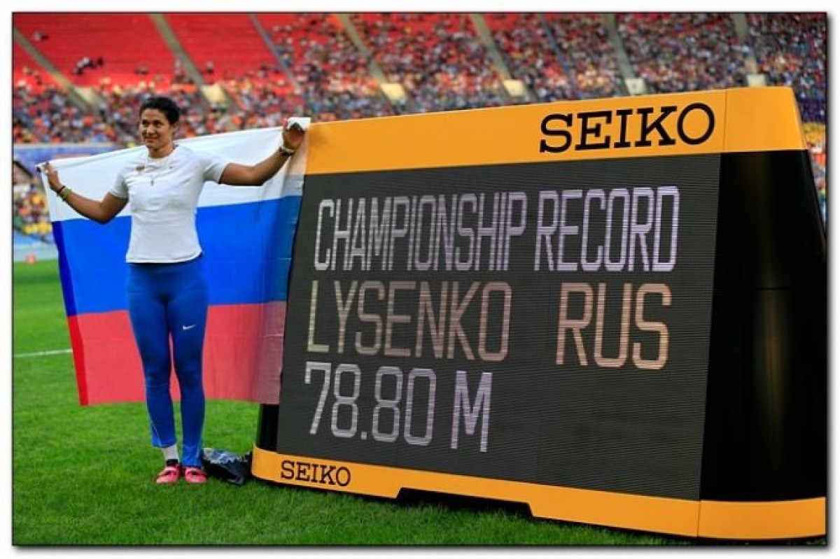 მასპინძლებმა, რუსებმა, დღეს ორი ოქროს მედალი მოიპოვეს – კაცებში სიგრძეზე ხტომასა და ქალთა შორის უროს ტყორცნაში.