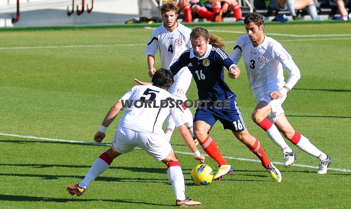 დასაწყისში შოტლანდიელებმა შექმნეს მომენტი, როცა კვირკველია შეცდა: მეი საჯარიმოში შევიდა, არმსტრონგს გადააწოდა და მისი დარტყმული გიორგი ნადირაძემ მოიგერია, დამატებაზე კი მაკგაჰმა ძელს მოარტყა. დაახლოებით მე-15 წუთიდან გამოიკვეთა ქართველთა უპირატესობა, რაც ბურთის ფლობაში გამოიხატებოდა. აშკარად ჩანდა, სქოთებს უჭირდათ ქართველთათვის ბურთის წართმევა. სწორედ ეს აღმოჩნდა გადამწყვეტი ამ შეხვედრაში - ჩივაძემ გუნდს დაავალა, რაც შეიძლება ხშირად ეკონტროლებინათ ბურთი, დაბლა ეგორებინათ, ტექნიკაში უპირატესობა გამოეყენებინათ.