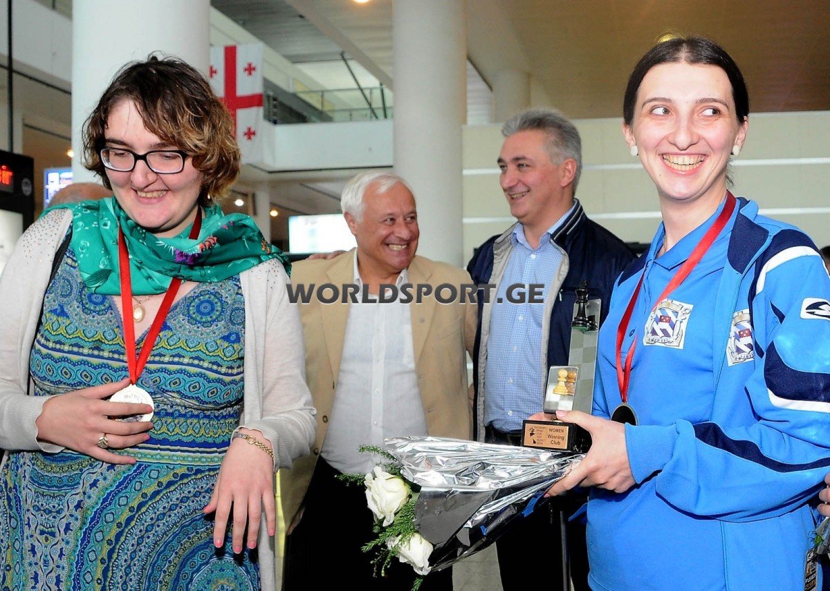 მასმედიის წარმომადგენლებთან ერთად თბილისის საერთაშორისო აეროპორტში ტრიუმფატორ მოჭადრაკეებთან შეხვედრას „მსოფლიო სპორტიც“ ესწრებოდა, რომელიც გუნდის წარმომადგენლებს გაესაუბრა.