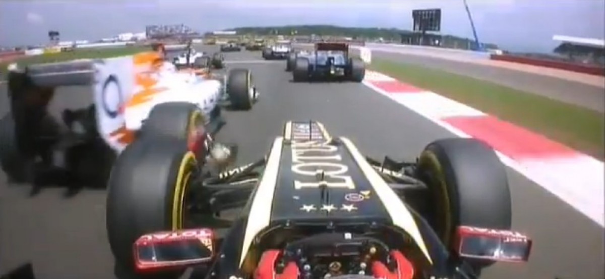 შემთხვევა პირველ წრეზე, არენას კომპლექსის მარცხენა მოსახვევში მოხდა. „ლოტუსი“ წინა ფრთით „ფორს ინდიას“ უკანა მარჯვენა ბორბალზე დაეჯახა. ამით კი უფრო შოტლანდიელი მრბოლი დაზარალდა, რომელმაც სამი ბორბლით დატოვა ტრასა და რბოლაში აღარც დაბრუნებულა. ფრანგმა კი ბოქსებში შეიარა და ნაადრევად შეასრულა პირველი პიტსტოპი, რომლის დროსაც, მის მანქანას ცხვირიც გამოუცვალეს.