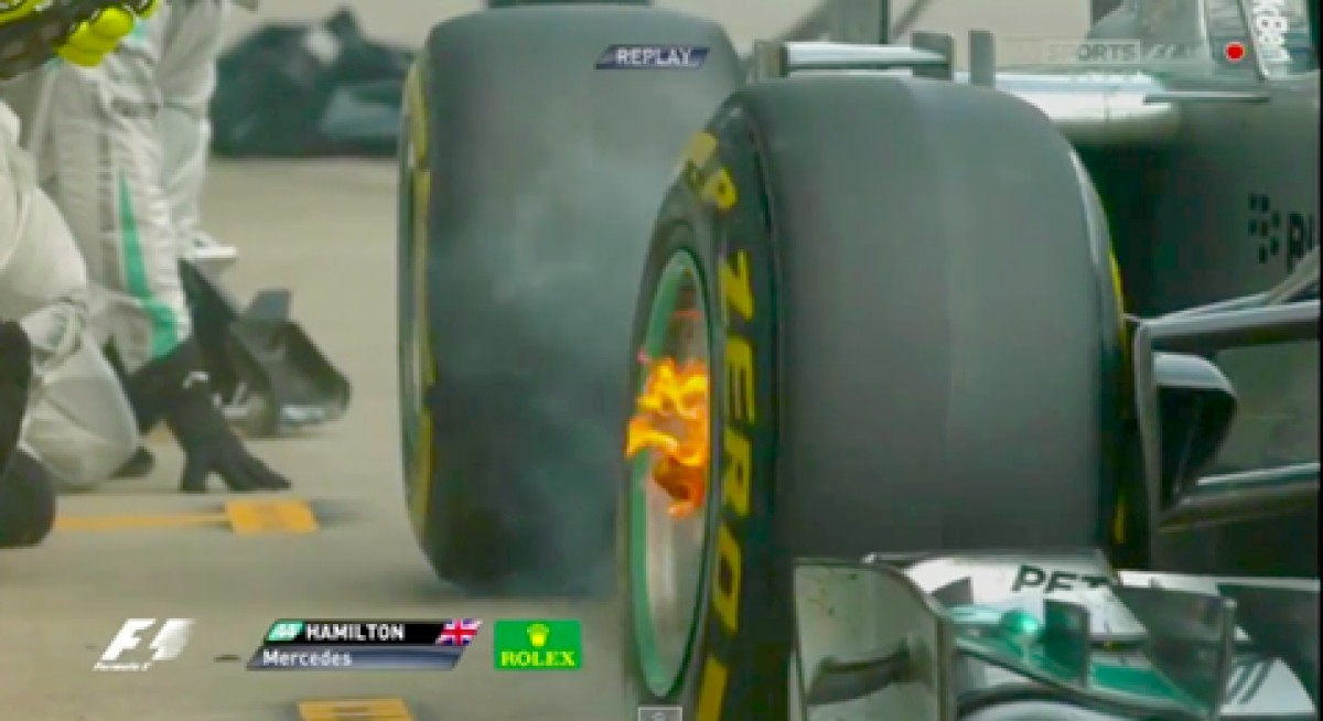 „ერთ-ერთი პიტ სტოპის დროს, ბიჭებს მარცხენა წინა ბორბალთან დაკავშირებით პრობლემები ჰქონდათ. ჯამში დაახლოებით ორი წამი დამეკარგა, რაც ძალიან ძვირად ფასობდა, მაგრამ ეს ორი წამი პირველზე მაინც ვერ გამიყვანდა“, - ამბობს ჰამილტონი, რომლის მანქანის მარჯვენა წინ ბორბლიდანაც, ერთ-ერთი პიტ სტოპის დროს, ცეცხლის ალმა გამოჰყო ენა. მაგრამ ბედად მუხრუჭება არ დამწვარა და ბრიტანელმაც რბოლის გაგრძელება შეძლო.