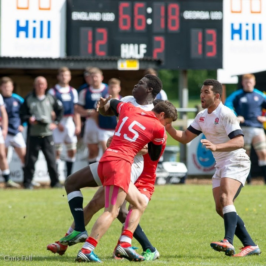 მატჩის დასასრულისკენ, ინგლისელებმა თითქოს გამოსტაცეს სტუმრებს გამარჯვება, მას შემდეგ, რაც ფრთაზე მოთამაშე ჯექ როსითერის ლელომ ანგარიში 20:20 გახადა და შეცვლაზე შემოსულმა როდრი ედემსონმა ეს ლელო გარდასახა, მაგრამ მასპინძლები რაქში დაჯარიმდნენ. საქართველოს 19-წლამდელთა 15-მა ნომერმა, გიორგი ბაბუნაშვილმა ჯარიმა ზუსტად შეასრულა და ამ უშეღავათო ბრძოლაში ნაკრებს გამარჯვება მოუტანა.