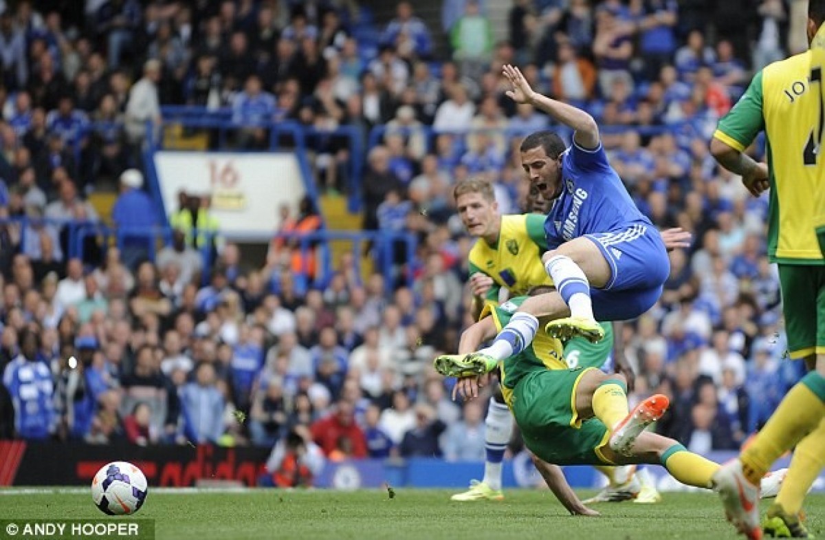 დღის მეორე მატჩში კი “ჩელსი” ჯერ კიდევ ვერ გამოსულიყო “ატლეტიკოს” კოშმარიდან. ფეხბურთელებს სიმწყობრე აკლდათ და მოურინიუც თითქოს ნირწამხდარი ჩანდა, რაც მას საერთოდ არ ახასიათებს ხოლმე. “ნორვიჩს” კი აუცილებლად უნდა გაემარჯვა, თუკი პრემიერლიგაში დარჩენა სურდა, მაგრამ არაფერი გამოუვიდა. პირველ ტაიმში მასპინძლები ტერიტორიულ უპირატესობას ფლობდნენ და რამდენიმე სახიფათო შეტევაც განახორციელეს, შურლემ ძელსაც გაარტყა ბურთი. შესვენების შემდეგ მოურინიუმ მინდორზე აზარი და დავიდ ლუისი გაიყვანა და “არისტოკრატთა” თამაშიც გაცოცხლდა. ჯერ ლუისმა მოარტყა ბურთი ხარიხას, შემდეგ მასპინძლები ორჯერ ითხოვდნენ პენალტს, ჯერ შურლეს, შემდეგ აზარის წაქცევისთვის, მაგრამ არბიტრი სუორბრიკი შეუვალი აღმოჩნდა. “ნორვიჩი” საკუთარი საჯარიმოდან თითქმის არ გამოდიოდა, მაგრამ ერთი “ჩხვლეტა” მაინც გამოუვიდა, სნოდგრასი გადიოდა მეკარესთან პირისპირ, მაგრამ დიდებულად ითამაშა კეჰილმა. საბოლოოდ, უგოლო ფრე, რომელიც არცერთს აწყობდა.