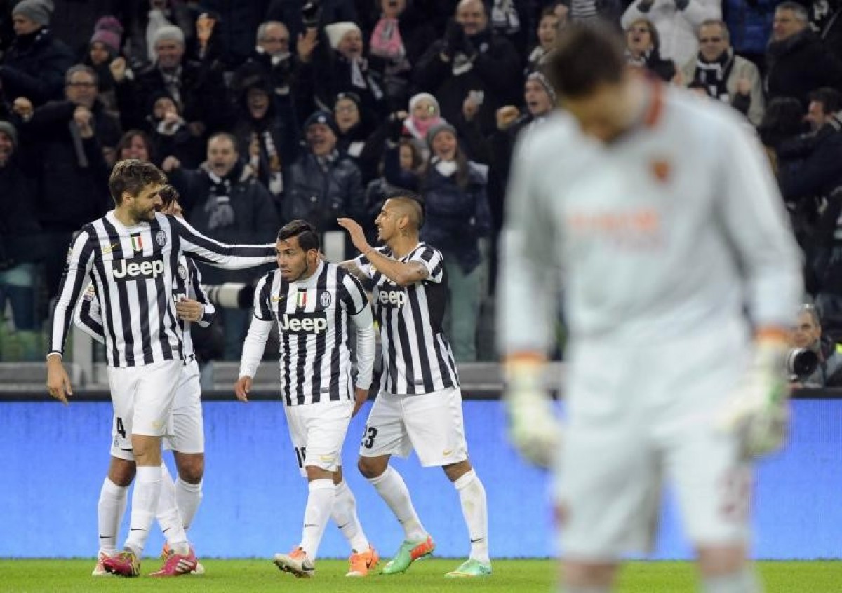 პირველი ნახევარი „იუვენტუსმა“ მოიგო, მაგრამ შესვენებამდე გუნდებმა თანაბარი ფეხბურთი აჩვენეს. ტაიმის ერთადერთი გოლი ვიდალმა გაიტანა, რომელმაც ტევესის კარგი გადაცემის შემდეგ, ახლო მანძილიდან იხეირა. ჩილელმა ნახევარმცველმა „რომას“ კარში თავისი მე-4 გოლი გაიტანა. ის ყველაზე მეტად რომაულ გუნდებს ერჩის - 26 წლის ფეხბურთელს „ლაციოს“ კარშიც 4-ჯერ გაუტანია.