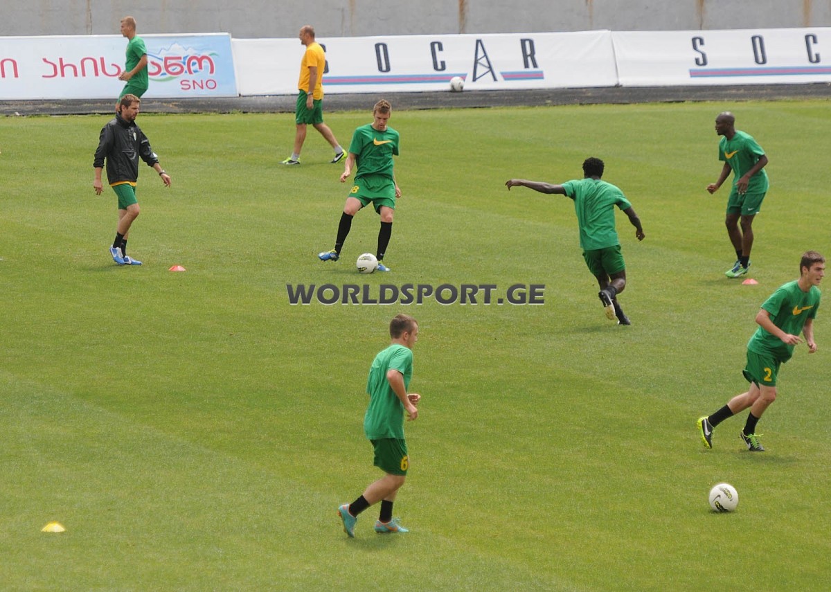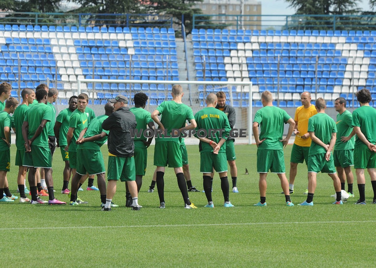 ვარჯიში სლოვაკებმა დათქმულ დროს დაიწყეს. მთელ პროცესს აქტიურად და ენერგიულად ხელმძღვანელობდა “ჟილინას” თავკაცი ადრიან გულა. მცირეხნიანი გახურების შემდეგ გულამ ექვსკაციან ჯგუფებად დაჰყო შეგირდები და დაახლოებით 25 წუთის განმავლობაში ფეხბურთელები ძირითადად ორი და ერთი შეხებით მოკლე გადაცემებს ამუშავებდნენ. შემდეგ რამდენიმე წუთი სისწრაფეებზე ივარჯიშეს და ორ გუნდად გაყოფილნი ორ შეხებაზე ივარჯიშეს. ამ ყველაფრის მერე, ნახევარ მოედანზე ორკარა გააჩაღეს, სადაც გუნდები პირობითად “მწვანეებად” და “წითლებად” დაიყვნენ. ამ ვარჯიშის დროს გამოჩნდა, რომ “ჟილინას” ფეხბურთელები საკმაოდ კარგ დარტყმებს ფლობენ, ასევე ეფექტურად თამაშობენ თავით. ეს მინი-მატჩი კი “მწვანეებმა” მოიგეს - 2:0. ბოლოს, მწვრთნელის მითითებით, სლოვაკი ფეხბურთელები რამდენიმესვლიანი კომბინაციის გოლად გარდასახვაში ვარჯიშობდნენ და უნდა ითქვას, რომ ამას ისინი საკმაო სიზუსტით ასრულებდნენ.