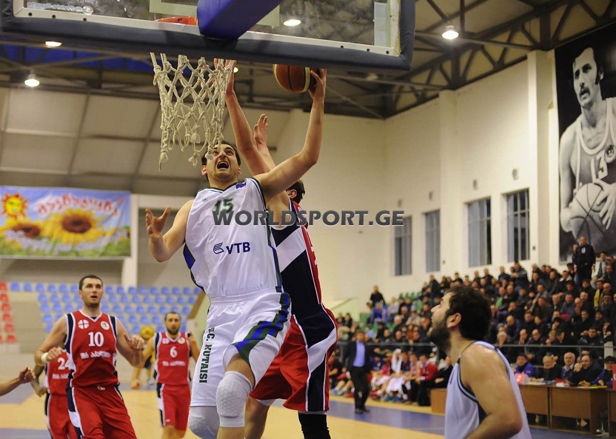 მატჩი სტუმართა ამერიკელი ლეგიონერის პერიშ ბრაუნის ორი ზუსტი სროლით დაიწყო და დედაქალაქელები 4:0 დაწინაურდნენ, რასაც მოჰყვა დავით ბარბაქაძის ზუსტი გასროლა სამქულიანიდან და აკაკი დვალიშვილის საშუალო მანძილიდან გააზრებული თამაში. ამის შემდეგ ბოქოლიშვილმა დააწინაურა თბილისელები 6:5, რასაც მეორე მეოთხედის მე-6 წუთამდე ქუთაისელთა უპირატესობა მოჰყვა. პაექრობის პირველი მეოთხედის გმირი იმერთაგან დავით ბარბაქაძე გამოდგა, რომელმაც დროის ამ მონაკვეთში 14 ქულა დააგროვა, აქედან სამჯერ სამქულიანიდან. მას კარგად უბამდა მხარს გიორგი ცეკვავა და აკაკი დვალიშვილი. ტრადიციულად საიმედოდ და მაღალ დონეზე ირჯებოდა ქუთაისელთა აზერბაიჯანელი ლეგიონერი ზაურ ფაშაევი, რომელიც უნარიანად და აზრიანად უძღვებოდა საკუთარი გუნდის შეტევებს, ამასთანავე იგი მაღალი პროცენტით ისროდა საშუალო და შორი მანძილიდანაც. სტუმართაგან პირველი ტაიმის განმავლობაში ყველაზე გამორჩეულები ბრაუნი და ლომოური იყვნენ. ამ უკანასკნელმა სამჯერ ისროლა პირველ ნახევარში სამქულიანიდან ზუსტად. პირველი მეოთხედი მასპინძლებმა 28:20 მოიგეს, მეორე პერიოდში კი მათი უპირატესობა 11 ქულას აღწევდა, მაგრამ დედაქალაქელებმა მოწინააღმდეგეს 11:0 გაქცევა მოუწყვეს და 38:36-ზე დაწინაურება მოახერხეს. თბილისელთა კარგ თამაშს მასპინძლებმა ადეკვატური ქმედებით უპასუხეს და მეტოქეს მეოთხედის ბოლომდე 13:0 აჯობეს, საბოლოოდ კი ტაიმი 49:41 მოიგეს.