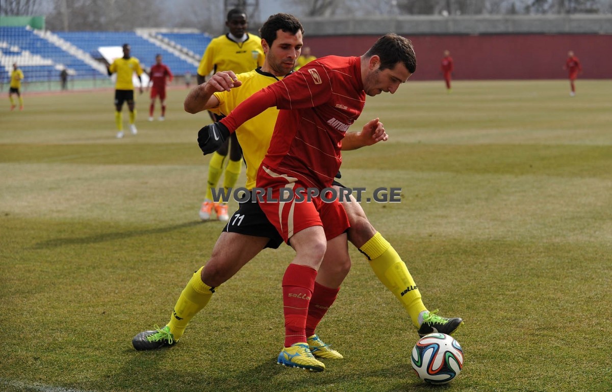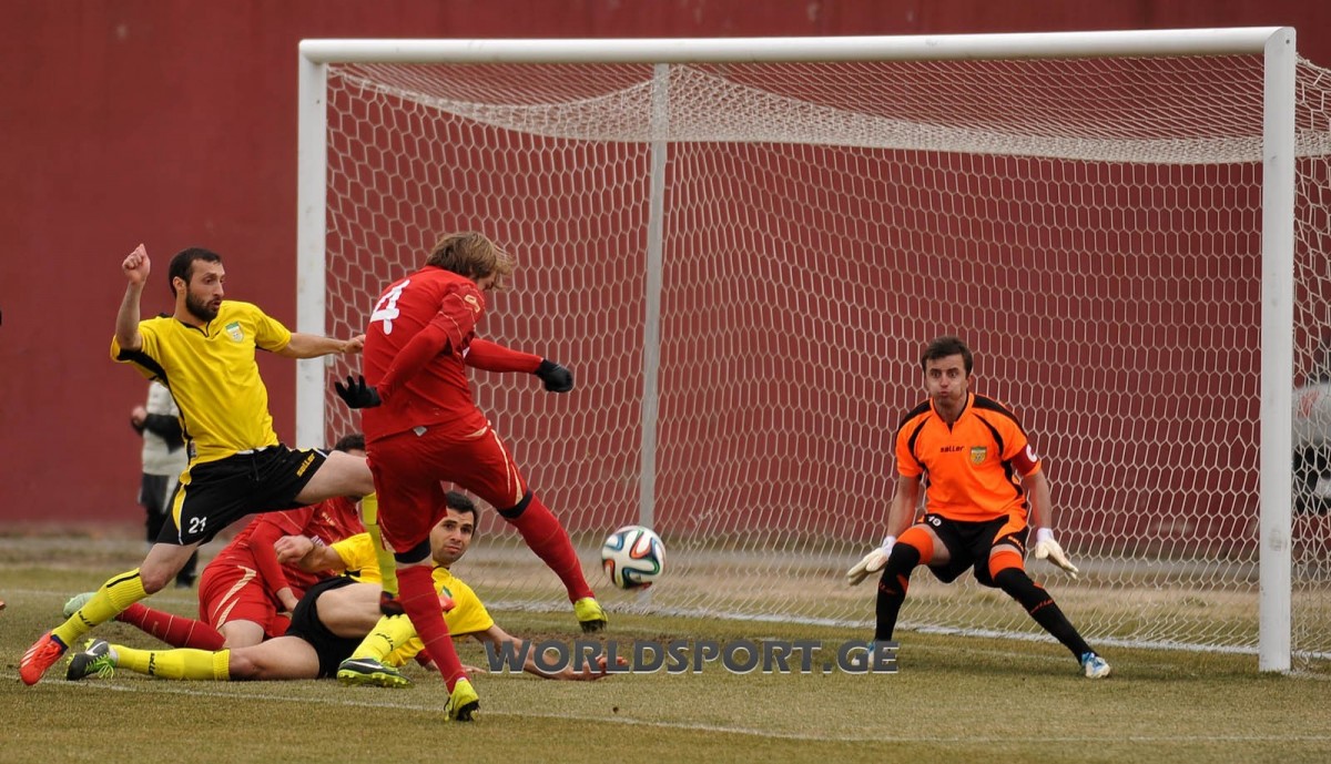 პირველი ტაიმის შუაწელამდე სახიფათო მომენტი არცერთ კართან შექმნილა. 27-ე წუთზე, გიორგი ბერიაშვილი მარჯვენა ფლანგიდან მეტოქის საჯარიმოში შეიჭრა და ზუსტი პასი გაუკეთა ლევან კორღალიძეს, რომლის ეფექტური “მაკრატელა” არაზუსტი აღმოჩნდა.