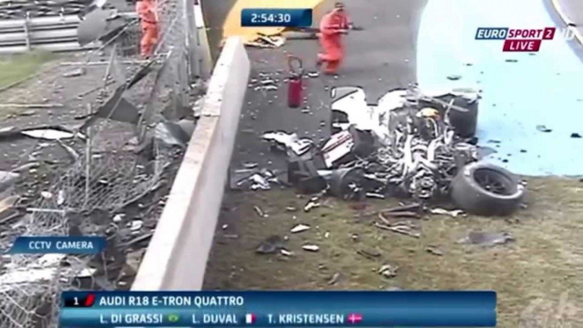 ლე მანის 24-საათიანი რბოლის თავისუფალი პრაქტიკის დროს, „აუდის“ პირველ ეკიპაჟს, რომლის საჭესთანაც, ლე მანის შარშანდელი გამარჯვებული, ფრანგი ლოიკ დუვალი იჯდა, მძიმე ავარია შეემთხვა. „პორშეს“ მოსახვევებში, პირველი კატეგორიის პროტოტიპმა „აუდი 18 e-ტრონმა“ მართვა დაკარგა, კედელს მიენარცხა, მასზე ავარდა, ნამსხვრევებისგან დამცავ ბადესაც დაეჯახა და გზის პირას, სრულიად გაპარტახებული დაეცა.