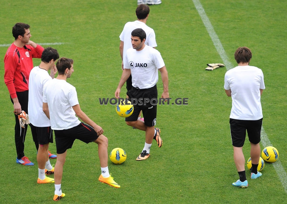 საქართველოს ფეხბურთელთა ეროვნულმა ნაკრებმა ტექნიკურ ცენტრ "ბასაზე" ვარჯიში 18 საათზე დაიწყო. ღია ვარჯიში იყო, თუმცა თითებზე ჩამოსათვლელი ადამიანის გარდა, არავინ დასწრებია – იყვნენ ჟურნალისტები და რამდენიმე ფეხბურთელის ოჯახის წევრები.