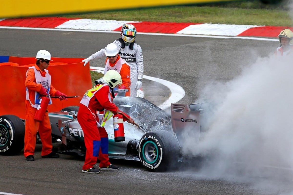 ჰო, მართლა, ჰამილტონს კვალიფიკაციის პირველივე სექტორში არ გაუმართლა - მისი ძრავი აალდა. მანქანა პიტლეინის შესასვლელში გააჩერა და დაღონებულმა გასწია ბოქსისკენ. სხვათა შორის, ის ამ კვალიფიკაციის ერთადერთი ხელმოცარული არაა. მასზე უარესი დაემართა კიმი რაიკონენს, რომელიც „მარუსიას“ ჟიულ ბიანკიმაც კი ჩამოიტოვა. ხომ წარმოგიდგენიათ, რა ტრიალებდა ამ დროს კიმის თავში, ალბათ 100 გრამი „ფინლანდიას“ გადაყლურწვაზე ოცნებობდა.