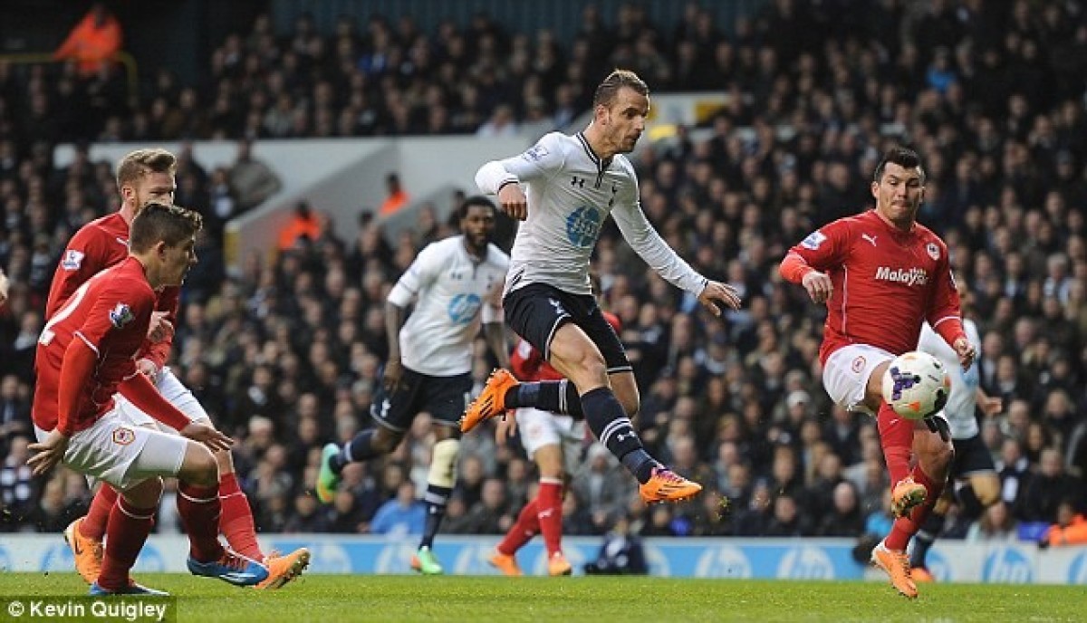 ევროპის ლიგაზე “დნიპროსთან” შთამბეჭდავი გამარჯვების შემდეგ, “ტოტენჰემი” პრემიერლიგის ერთ-ერთ აუტსაიდერ “კარდიფს” კარგ ხასიათზე დაუხვდა და “თავისი” 3 ქულაც მიითვალა. ამ მატჩში ერთი საინტერესო ამბავი მოხდა: წლეულს თამაშიდან პირველად გაიტანა რობერტო სოლდადომ. ჩვეულებრივ ის პენალტებს ასრულებს ხოლმე, ახლა კი დინამიკაში გაიტანა. ესპანელმა პასი ემანუელ ადებაიორისგან მიიღო საჯარიმოს შუაში და ორი შეხებით ეფექტური გოლი გაიტანა. გაშვებულმა ბურთმა სტუმრები კიდევ უფრო დათრგუნა. ერთი-ორჯერ მაინც გაიბრძოლეს, ხარიხასაც კი მოარტყეს ბურთი, მაგრამ სხვა ვერაფერი მოახერხეს.