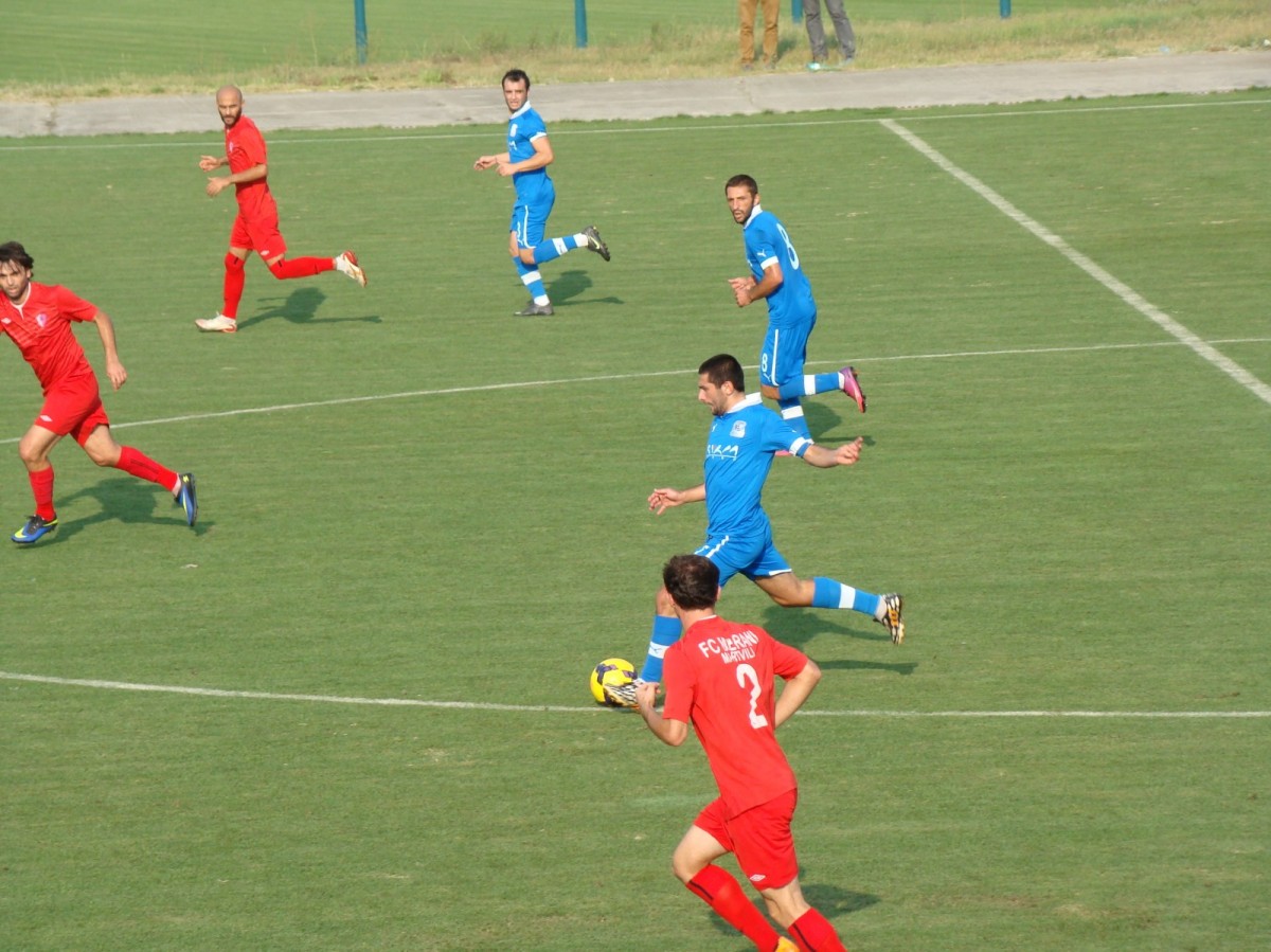 შეხვედრა "მერანის" სწრაფი გოლით დაიწყო – უკვე 3-ე წუთზე მარტვილელები ლევან გეგეჭკორმა დააწინაურა. ორივე გუნდის არაერთი მცდელობის მიუხედავად, შესვენებამდე ანგარიში აღარ შეცვლილა და ტაიმიც სტუმართა მინიმალური უპირატესობით 1:0 დასრულდა.