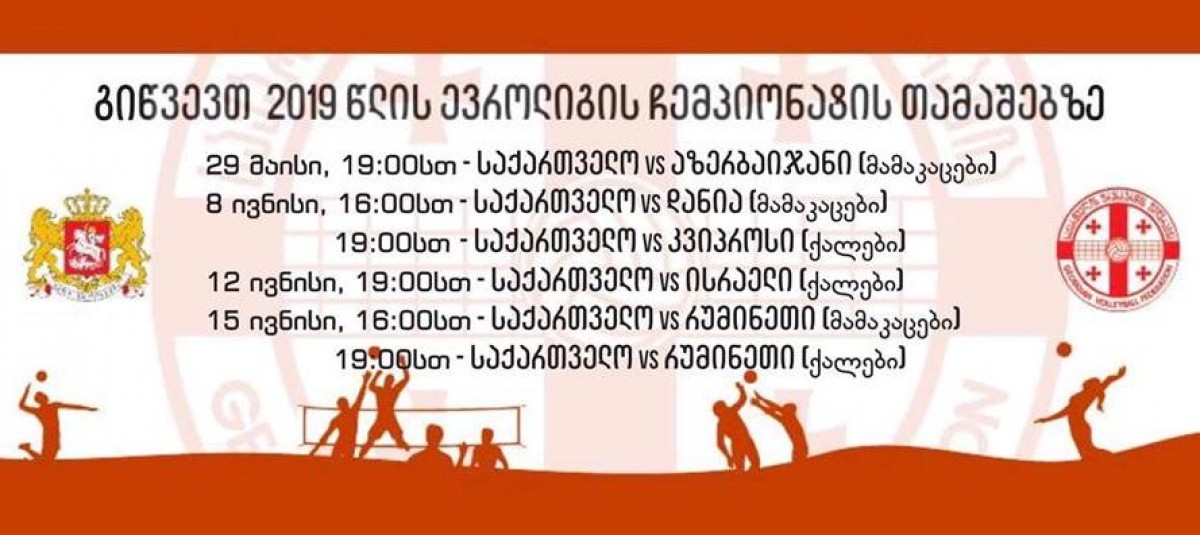 Матчи пройдут в разных странах. В Тбилиси встречи состоятся 29 мая и 8,12 и 15 июня в Дигомском олимпийском городке на волебойльной арене.