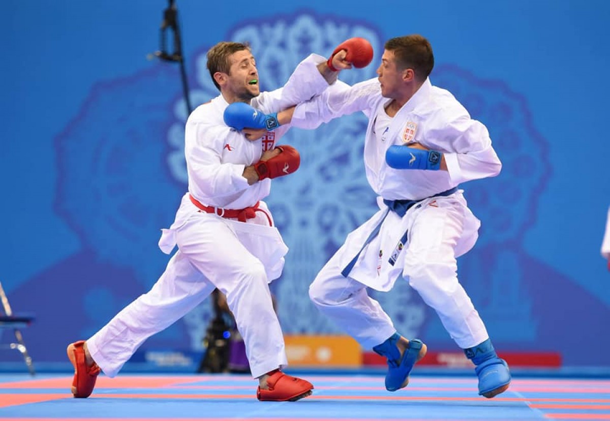Несмотря на поражение, грузинский каратист выиграл медаль, потому что проигрыш в полуфинале ,в к каратэ означает бронзовую медаль.
