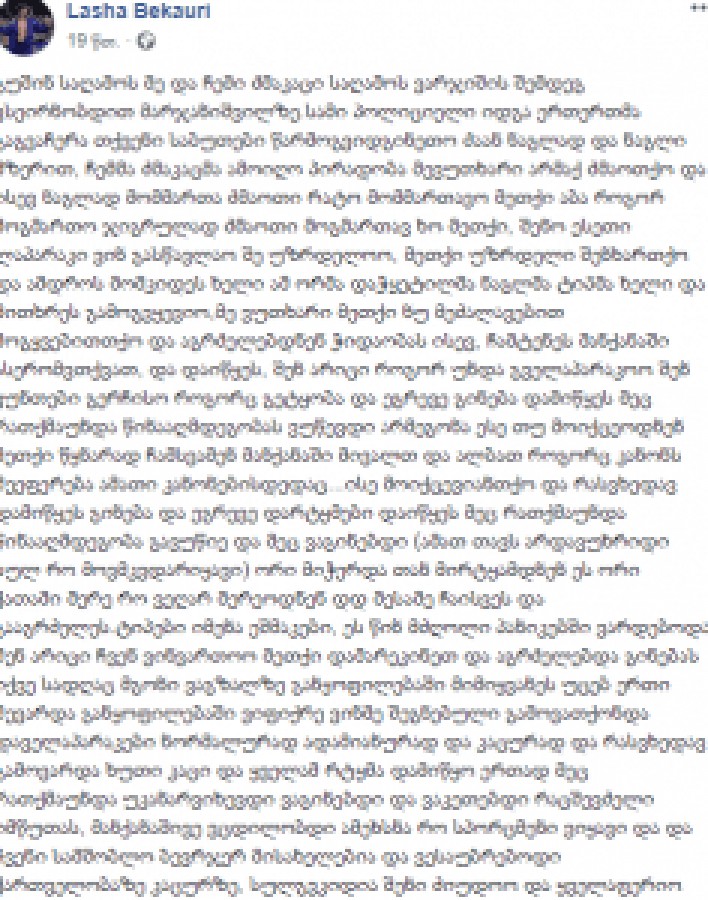 В МВД Грузии журналистам издания «Нетгазети» подтвердили, что вечером 7 декабря спортсмен был задержан на основании статей «неподчинение законному требованию полиции» и «мелкое хулиганство» Кодекса административных правонарушений. По неизвестным причинам Бекаури удалил свой пост в Facbook. Он также отказался давать комментарии для СМИ.