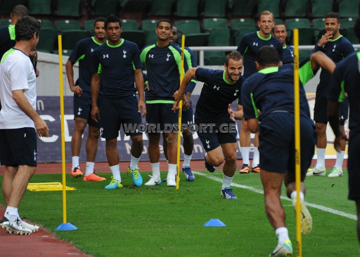 ...После завершения пресс-конференции лондонский “Тоттенхэм” провёл тренировку на “Динамо Арене”. В течение первых 15-ти минут тренировка была открытой для СМИ.