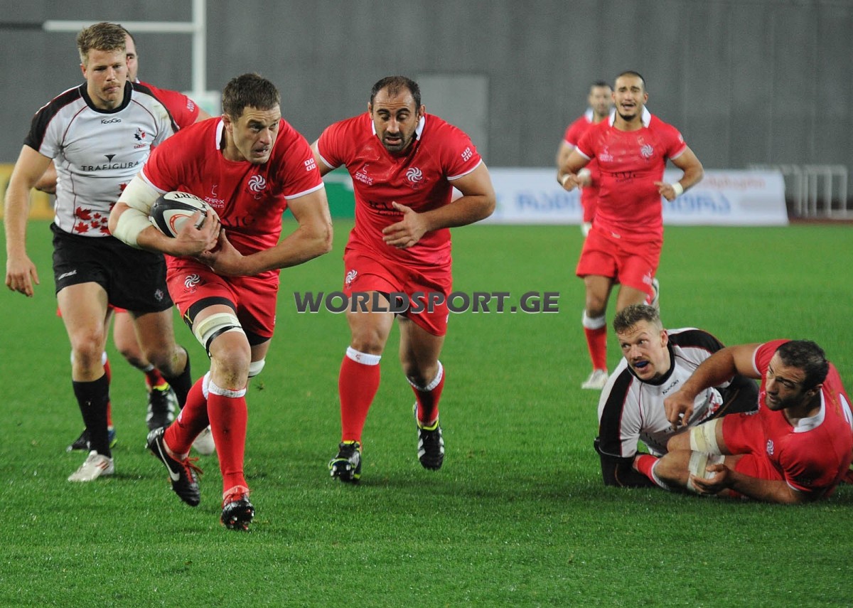 На 50-ой минуте Георгий Бегадзе прорвал линию гостей в близи центральной линии и, уже ворвавшись в 22-метровой зоне соперника, отдал мяч налево Тедо Зибзибадзе, который продвинулся ещё на несколько метров. Мяч из рака получил Мамука Горгодзе, однако не смог его удержать и канадцы спаслись от попытки. Однако им не удалось вынести мяч из своей 22-метровой зоны, а уже в следующей же атаке Горгодзе исправил ошибку, мощным ударом дав начало новому наступлению. Грузины атаковали сперва справа, потом перенесли мяч на левый фланг и Зибзибадзе, получив мяч от Квирикашвили, ворвался в зачётку у самого края поля. После точной реализации Квирикашвили счёт стал 16:12 в пользу хозяев.