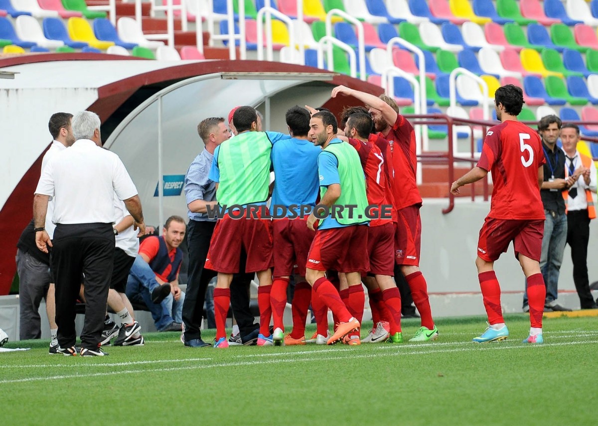 На 72-ой минуте Лаша Гвалия начал атаку, Горелишвили продолжил её и дал пас Давиду Болквадзе. Его удар отразил защитник, но Горелишвили оказался тут как тут и точно пробил - 2:0.
