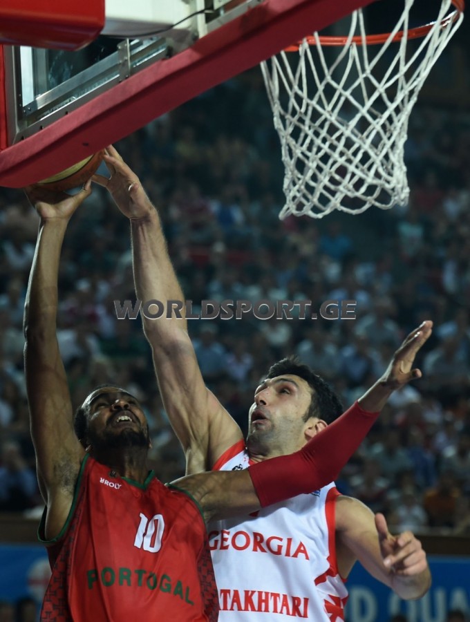 ...За трёхочковым Виктора Саникидзе последовали точные двухочковые Беки Бурджанадзе, того же Саникидзе и Зазы Пачулия и на первых же минутах мы вышли вперёд 9:0. Играя без травмированного Торнике Шенгелия, грузинские баскетболисты провели весь матч с должной мотивацией и не дали гостям приблизиться больше чем на 5 очков. Португальцы боролись (вторую четверть даже выиграли с 2-очковым преимуществом), однако эта не та команда, которая может оказать нам серьёзное сопротивление во Дворце спорта Тбилиси, в условиях активной поддержки наших болельщиков, хотя, если бы не 10 неиспользованных штрафных португальских игроков, матч мог бы получиться бы и более напряжённым.