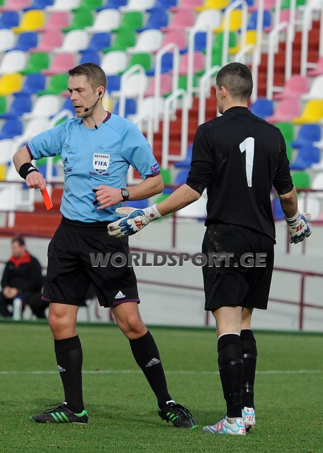 На 58-ой минуте Джикия, получив мяч слева от Георгия Тевзадзе, старался перебросить мяч через вышедшего за линию штрафной О’Брайена, однако тот остановил мяч рукой, за что был наказан красной карточкой. Матэ Цинцадзе прекрасно исполнил штрафной – 5:0.